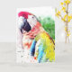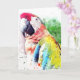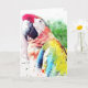 A blank inside greeting card with a vibrant and colourful digital watercolor of a Macaw.