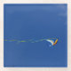 A photograph of a colourful macaw bird kite with ribbons floating in the wind coming from its wings, flying high in the summer blue sky. Photograph Copyright ©Kimberly J Tilley.