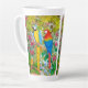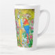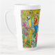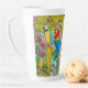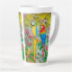 A high quality tall ceramic latte mug, perfect for tropical bird and parrot fans, featuring colourful macaw parrots by designer Carolyn McFann of Two Purring Cats Studio.