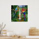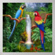 Beautiful jungles and waterfalls created by nature are brought to life with her colorful Macaw parrots who become the center of attention.
