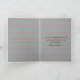 An humorous birthday card for a female, on the background of the MacBeth Ancient Scottish Tartan.