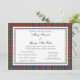 Scottish Wedding themed customisable wedding invitation using one of the tartans for the MacBeth family name. Customisable Wedding invitation information is framed in the centre of a stylised rectangular invitation. This is perfect for destination weddings, family heritage weddings, or Scottish themed weddings. If you would like another tartan not shown here, please feel free to message me. Please provide the STA Reference number for the tartan pattern you would like if possible.