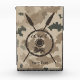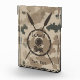A military brown "subdued" style depiction of a Maccabee's shield and two spears on a desert camo background. The shield is adorned by a lion and text reading "Yisrael" (Israel) in the Paleo-Hebrew alphabet. Add your own additional text.