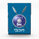 Chag Sameach! A depiction of a Maccabee's shield and two spears. The shield is adorned by a lion and text reading "Yisrael" (Israel) in the Paleo-Hebrew alphabet. Modern Hebrew text reading "Maccabee" also appears.