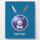Chag Sameach! A depiction of a Maccabee's shield and two spears. The shield is adorned by a lion and text reading "Yisrael" (Israel) in the Paleo-Hebrew alphabet. Add your own text.