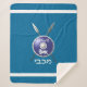 A depiction of a Maccabee's shield and two spears. The shield is adorned by a lion and text reading "Yisrael" (Israel) in the Paleo-Hebrew alphabet. Modern Hebrew text reading "Maccabee" also appears.