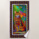 The fabric is soft and fluffy, feels great on the skin. The quality seems to be very good, I have not yet tested how absorbent the fabric is. The colors were vivid, the lines of the design clear, all in all, a great result.