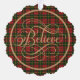 Original Scottish tartans are on these decorations for your tree. They are a mailable ornament you can attach to a parcel or send to someone during the Christmas season. Typographic words referring to Christmas are on these ornaments