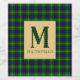 Handsome design celebrating your Scottish heritage, features monogram letter M in Clan MacDonald tartan plaid with matching background and customisable text