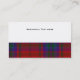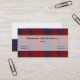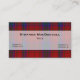 Stylish plaid business card done in the traditional blue, red, green, and purple clan MacDougall tartan pattern. The front of the card has a black edged semi transparent white band, across the middle of the card, with custom black text. The back of the card is done in white, with a strip of plaid at the bottom, and black text on the white portion. Personalise all the text to suit your needs. Handsome and professional looking business card.