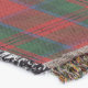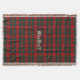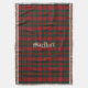 Colourful custom fringe end throw blanket made with graphics of the blue, green, red clan MacDuff tartan plaid pattern. Cream coloured old world style text can be personalised to read what you want. Lovely gift idea for anyone.