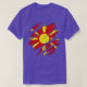 I give wanted to give this a 4 instead of a 5 because these Basic DARK T0shirts run unexpectedly SLIM or Narrow. Which is great if you do not have a potbelly, but I have a paunch. It isn't the shirt's fault that I've got a beer belly. The design and shirt itself is a quality cotton shirt. The color is more of a deep purple, but still a very pretty color. The Basic DARK T-shirts run a bit SLIMMER than the Basic Ts. The neck is a fraction narrower (or seems to be narrower) also. I'm a paunchy middle-aged woman and my neck is 12 inches (31cm) thick and the neckline fell about the same as in the photo of the man, and I had the desire to tug it a bit. So if you're a thick necked man or like loose shirts, be aware these are slimmer shirts. Once I get rid of my lockdown paunch it'll look great. The shirt washed well in cold water with no apparent bleeding. We don't have a dryer, so it hung dry. Did not shrink. Love the colors and the design. The design looks smaller on my shirt than it does on the model on-line. But still, it looks good on the shirt. The printing looks as it does on the model, just the size seems fractionally smaller. Washed garment in cold water, hung dry and design appeared unaffected.