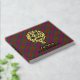 Clan MacGowan crest badge surrounded by a strap and buckle over tartan background. Custom front, back and spine text.