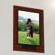 Colourful tartan plaid foil print, with a gold foil framed in photo area, against the traditional Scottish clan MacGregor tartan pattern background.  A gold foil plaque, on the bottom has dark green custom text.  Personalise with your photograph and text.