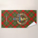 Clan Gregor or MacGregor crest badge surrounded by a strap and buckle over tartan background. Custom text on each towel.