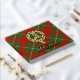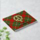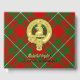 Clan Gregor or MacGregor crest badge surrounded by a strap and buckle over tartan background. Custom front, back and spine text.