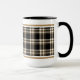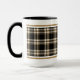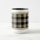 Coffee mug with the MacGuinness clan tartan, a classic plaid pattern in black, tan, and creamy white. Five styles available in two sizes.