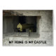 A card with second world war browning machine gun inside a concrete bunker. A barrel is outside the bunker's window