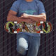 Adobe Illustrator and Photoshop illustration applied to skateboard deck.