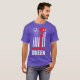 I give wanted to give this a 4 instead of a 5 because these Basic DARK T0shirts run unexpectedly SLIM or Narrow. Which is great if you do not have a potbelly, but I have a paunch. It isn't the shirt's fault that I've got a beer belly. The design and shirt itself is a quality cotton shirt. The color is more of a deep purple, but still a very pretty color. The Basic DARK T-shirts run a bit SLIMMER than the Basic Ts. The neck is a fraction narrower (or seems to be narrower) also. I'm a paunchy middle-aged woman and my neck is 12 inches (31cm) thick and the neckline fell about the same as in the photo of the man, and I had the desire to tug it a bit. So if you're a thick necked man or like loose shirts, be aware these are slimmer shirts. Once I get rid of my lockdown paunch it'll look great. The shirt washed well in cold water with no apparent bleeding. We don't have a dryer, so it hung dry. Did not shrink. Love the colors and the design. The design looks smaller on my shirt than it does on the model on-line. But still, it looks good on the shirt. The printing looks as it does on the model, just the size seems fractionally smaller. Washed garment in cold water, hung dry and design appeared unaffected.