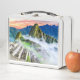 Nice white lunchbox with Machu Picchu in Peru - lost city of Incan Empire is UNESCO heritage.