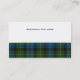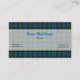 Stylish plaid business card done in the colourful blue, red, and green traditional MacKenzie tartan pattern. The front of the card has a white semi transparent band, across the middle of the card, with custom blue and black text. The back of the card is done in white, with a strip of plaid at the bottom, and black text on the white portion. Personalise all the text to suit your needs. Handsome and professional looking business card.