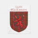 MacKinnon Scottish tartan plaid pattern design for the MacKinnon Clan Family underneath the red Lion Rampant Shield of Scotland.