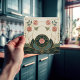 A fresh take on classic Mackintosh-inspired design, this elegant ceramic tile features stylized roses arranged like a faux stained-glass panel. Clean geometric framing, bead-chain details, and sweeping curved stems create a refined Art Nouveau look with a hint of Art Deco structure. The soft ivory background and muted palette of deep teal, sage green, and dusty blush pink are finished with warm metallic-gold outlines for a layered, dimensional effect. Perfect as a decorative wall accent, kitchen backsplash detail, bathroom feature tile, fireplace surround, or gift for lovers of vintage floral design.