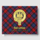 Clan MacLachlan crest badge surrounded by a strap and buckle over tartan background. Custom front, back and spine text.