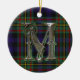 Ornate monogram letter M ornament, with the MacLellan clan tartan plaid as a background. Great looking family heirloom ornament. Makes a great gift ornament and decoration for other uses around the house.