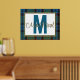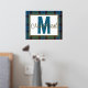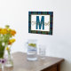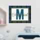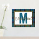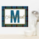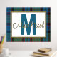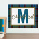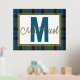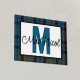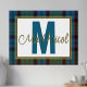 Handsome tartan plaid foil print, with a gold foil framed in text area, against the Scottish MacNicol hunting tartan pattern background. A large federal blue single letter monogram and gold foil name are ready to personalise.