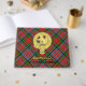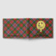 Clan MacPherson crest badge surrounded by a strap and buckle over tartan background. Custom front, back and spine text.