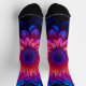 This pair of Crystalline Cascade socks brings a fiery core blazing into electric blue petals to your daily steps. Each sock features the complete, undivided artwork as a single wearable masterpiece. A luminous fusion of vintage botanical inspiration and AI imagination