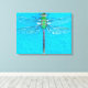 Macro Green Dragonfly on Blue Background Photo. Enhancements performed by PDArts.