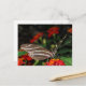 A postcard created with a macro photograph of a Zebra Longwing butterfly that is resting on a node of flowers.