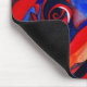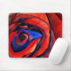 with original art design from watercolour painting by Sacha Grossel of large, close focus, macro style red rose with blue highlights. This traditional English flower with crimson petals has a bright, intense colour design that conveys the abstraction of the botanical form and themes of love and passion.
