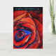 Perfect for Valentine's Day with original art design from watercolour painting by Sacha Grossel of large, close focus, macro style red rose with blue highlights and Valentine's Day greeting. This traditional English flower with crimson petals has a bright, intense color design that conveys the abstraction of the botanical form and themes of love and passion.