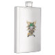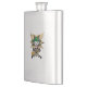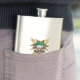 The product is a good size and came exactly as it was pictured.  The lid is not attached to the flask, which could be dangerous on drunken nights... The print came out surprisingly well and looks very sharp.  Would definitely recommend.