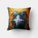 This pillow has a mad bird on it.