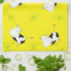 American Mojo kitchen towel with mad cow funny cartoon illustration and green grass