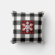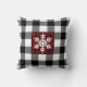 This fresh and modern black and white Buffalo plaid throw pillow has a large central red and black plaid square with a white snowflake on it. Customise it to add your own text if you want to, but we think it looks great as is.