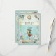 Elegant, whimsical vintage Alice in Wonderland tea party collage formal RSVP flat cards suitable for any occasions - weddings, baby showers, bridals showers, birthday party, sweet 16 etc. On the front of these cute shabby chic blue, white and green invitations is the colourful mad hatter with a cup of tea and a slice of bread and jam. He is talking to the white rabbit who is holding his gold pocket watch. Beside them is a teapot. The background is a beautiful vintage journal paper with flowers, an antique brass key, big pocket watch, pretty white daisies and blue roses with a stylish green hearts border . On the reverse of these lovely invitations is the same background with the addition of a pretty drink me bottle, teapot and cute jam tart heart. All of the text is fully customisable to meet your needs and you can change the font style, colour and size of font if you desire. I have matching invites in my store. If you need any assistance customising your product please contact me through my store and I will be happy to help. PLEASE NOTE: All invitations on Zazzle have flat printed images.
