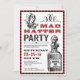Invite your unbirthday or brunch guests to a whimsical, vintage Alice in Wonderland's Mad Hatter themed party. Easy to customise details with a red and black chequerboard on reverse. Available in other party types.