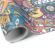Mad monsters and robots in a crazy crowded pattern wrapping paper