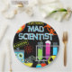 Mad Scientist Birthday paper plates, a great design that features test tubes, a jar of eyeballs, beakers, and more with blue text edged with white that reads Mad Scientist! We have the matching mad scientist birthday invitations, T-shirts, and chocolate dipped Oreos!