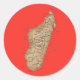 A map of Madagascar is centred over a flag-colour background on this sticker. Stick up for Malagasy values!