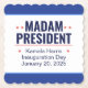 Madam President Kamala Harris. Inauguration Day 2025. January 20, 2025. That's "Madam President" to you. If you're having problems saying Kamala Harris's first name (it's pronounced "Comma-la"), call her "Madam President" or "Ms. President." Design description: The design area has a white background and a Biden blue border around the edges and Delaware Bay Blue lines at inside edge of the top and bottom borders. All letter text is in a sans serif font in a dark blue Joe Navy border. The first line of text reads, "Madam" with two Honest Red stars on each side. The second line of text reads, "President." Below that is a thin Honest Red line. The bottom of the design area, reads, "Kamala Harris," with a single, angled red star between on each side. Below that, the words over 2 lines, "Inauguration Day 2025, January 20, 2025." Each line of text is a template. Customise with your preferred colours.