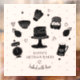 Cute illustrated baker pastry chef pink and black window cling for your bakery shop or pop up. Whimsical baking utensils and ingredients. Pink on black.