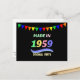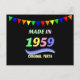 Made in 1959, colourful text design, custom postcard.