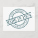 Made in 1974 Birth Year Round Rubber Stamp Logo Postcard